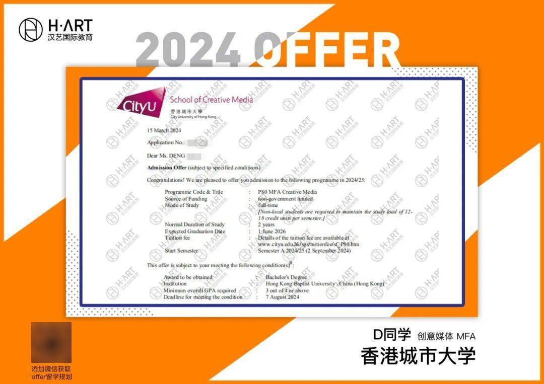 汉艺22届学员C同学 获 香港大学 创新设计与技术工程 MSc offer