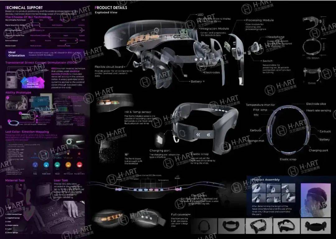 像汉艺23届的Z同学,他在作品集中应用脑机接口技术,完成了相关的智能可穿戴设计项目,一举收获港理的创新多媒体娱乐MSc,以及皇艺、伦艺、港理、格艺等一众世界名校的硕士offer,同时还拿下华为、抖音的实习offer。